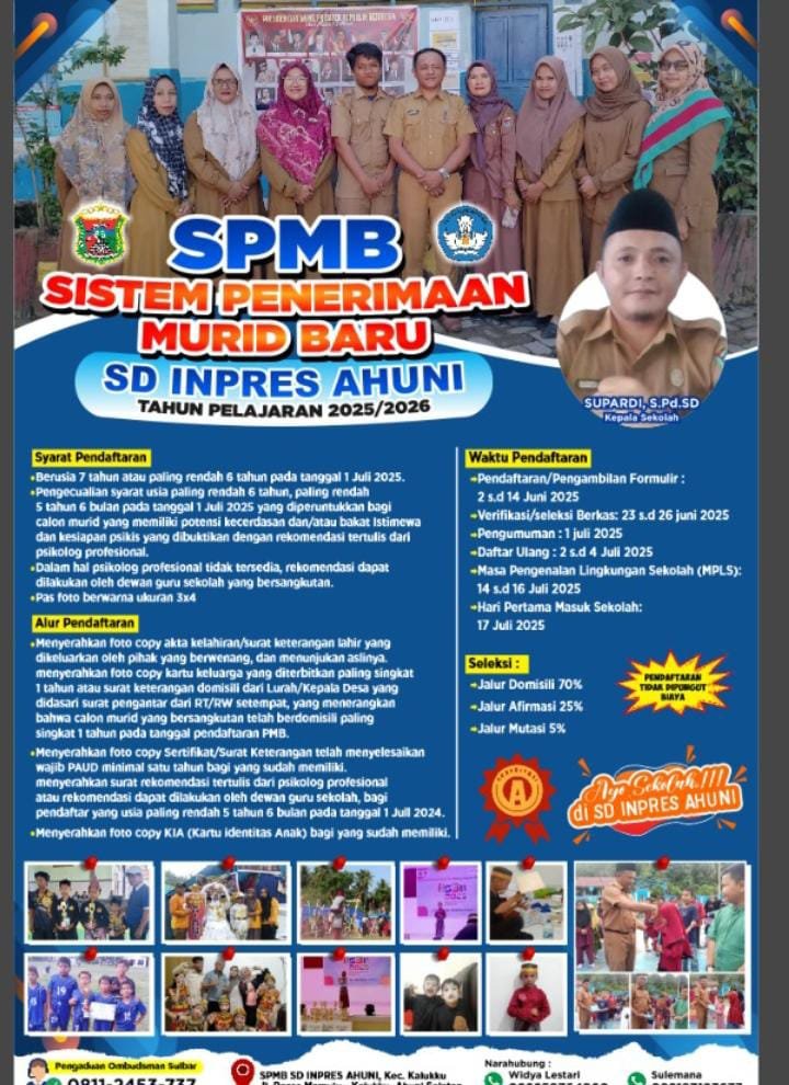 Penerimaan Siswa Baru SD Inpres Ahuni Tahun 2025 Dibuka